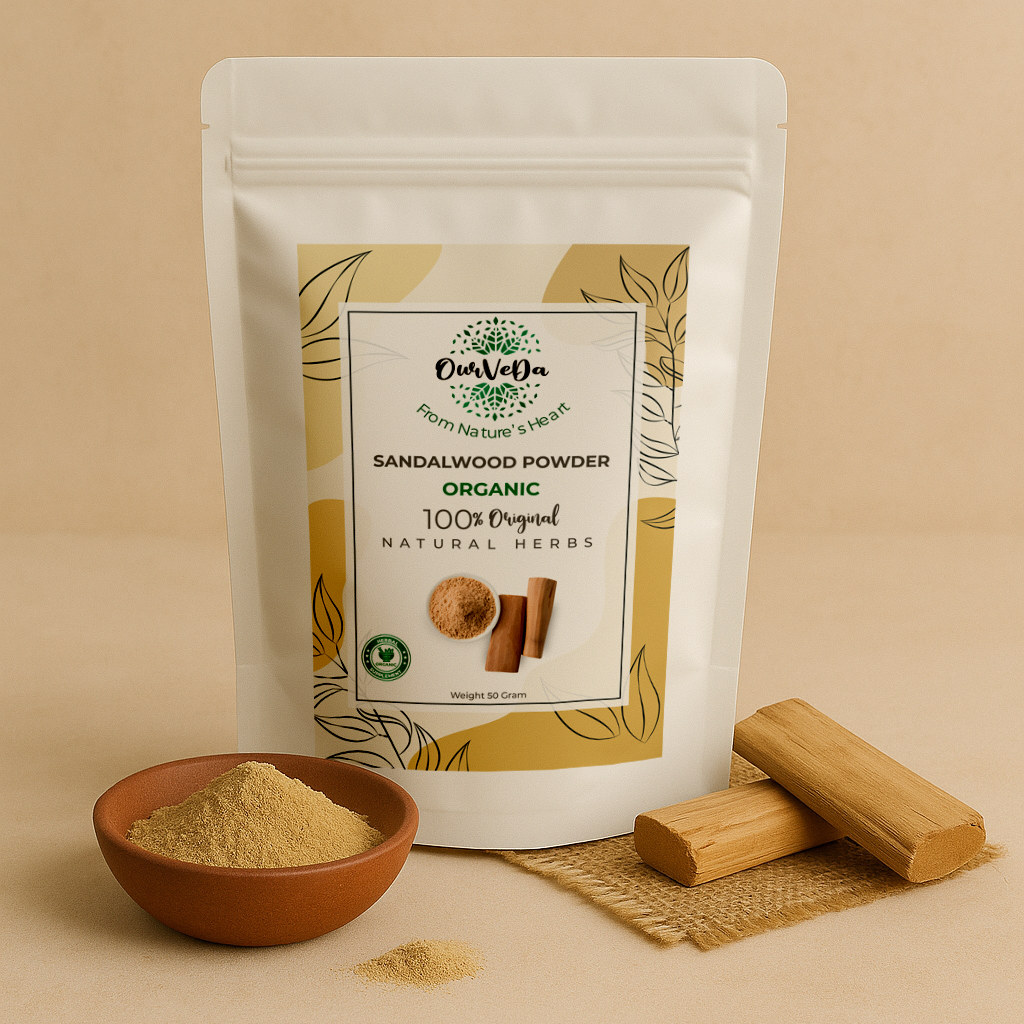 100% Pure Sandalwood (Santalum album) – a premium-grade wood powder used for cooling, anti-aging, and blemish control.